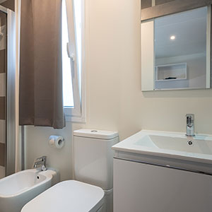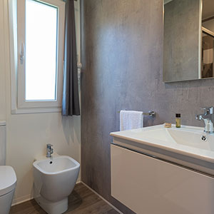 - 2 Badezimmer, eines davon im Doppelzimmer, ausgestattet mit Duschkabine, WC, Waschbecken, Bidet und Haartrockner