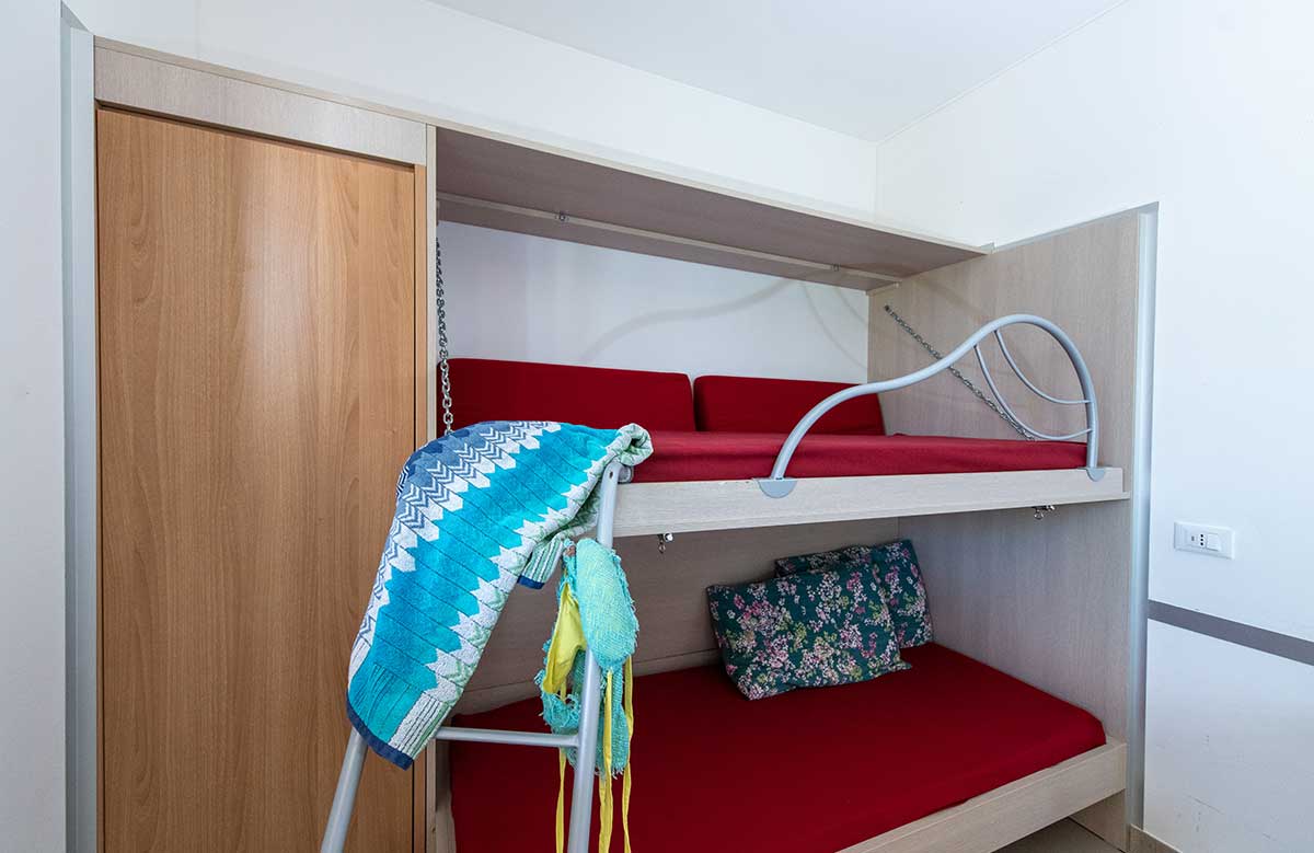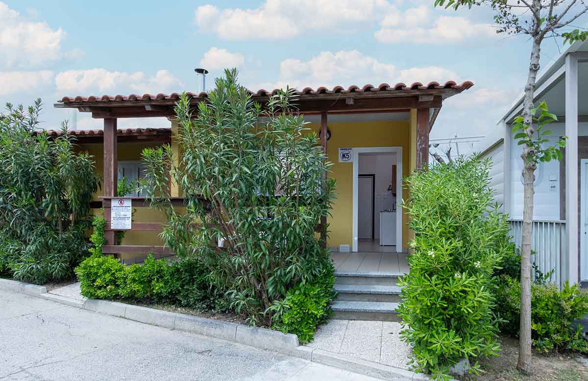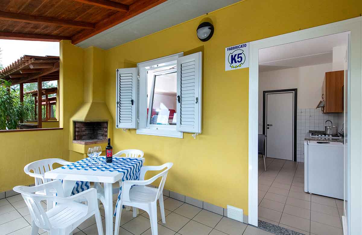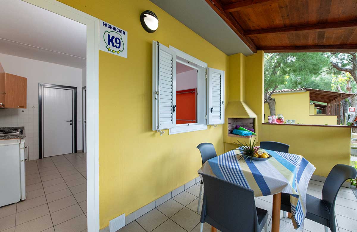 It consists of a double bedroom, living room with kitchenette (equipped with cutlery and cookware) 80-litre fridge (with freezer compartment), sofa bed, outside veranda furnished with dining table and chairs. Bathroom complete with all amenities: washbasin, shower cubicle, bidet, toilet and hairdryer.